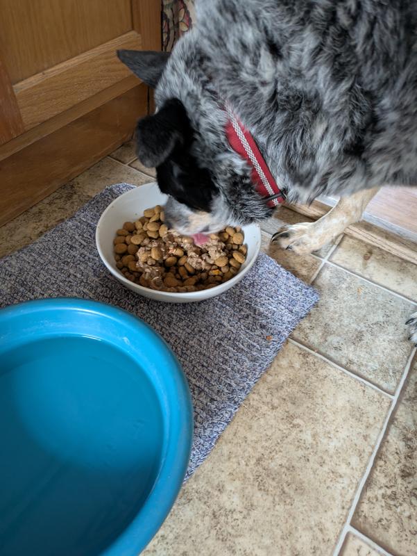 I have a female terrier mix that is so picky, we have to change foods about every 3-4 weeks. So I tried putting a small pouch of Hill's Science Diet Adult 7+ Healthy