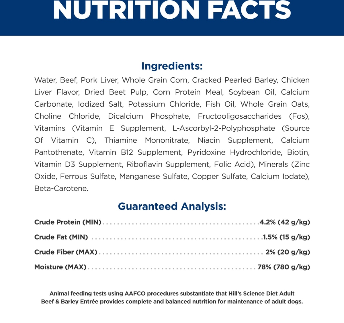 Hill's Science Diet Adult Beef & Barley Entree Wet Dog Food, 13-oz can, case of 12