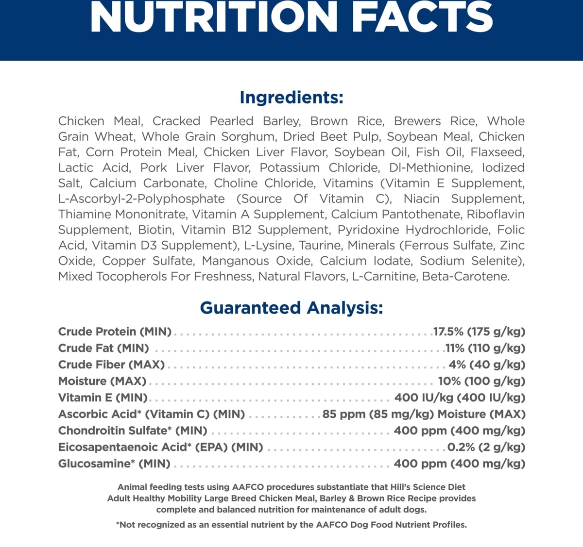 Hill's Science Diet Adult Healthy Mobility Large Breed Chicken Meal, Brown Rice & Barley Recipe Dry Dog Food, 30-lb bag