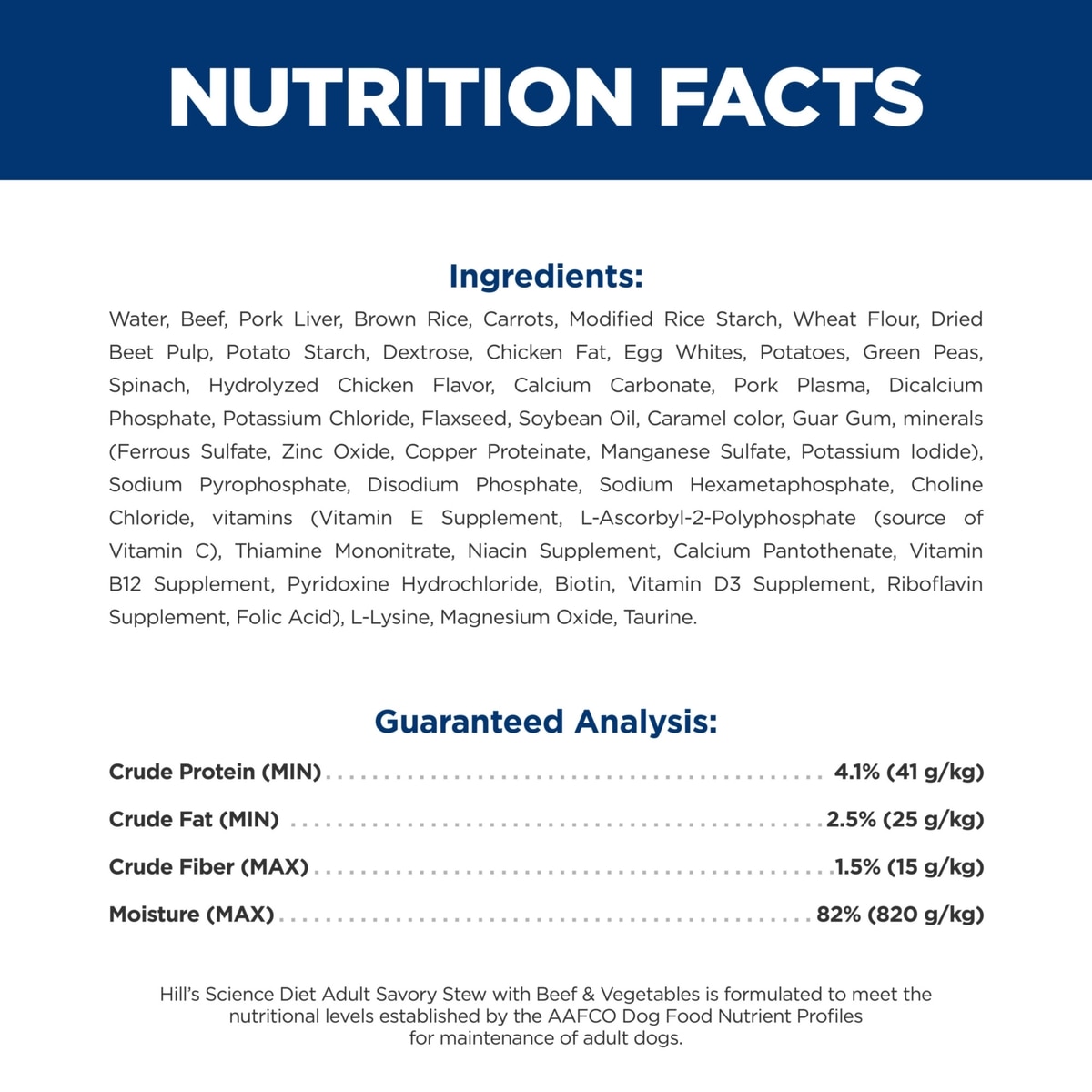Hill's Science Diet Adult Savory Stew with Beef & Vegetables Wet Dog Food, 12.8-oz can, case of 12