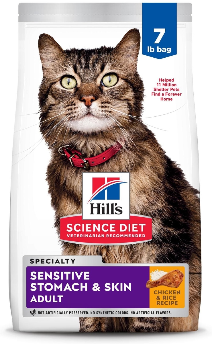 Hill's Science Diet Adult Sensitive Stomach & Sensitive Skin Chicken & Rice Recipe Dry Cat Food, 7-lb bag