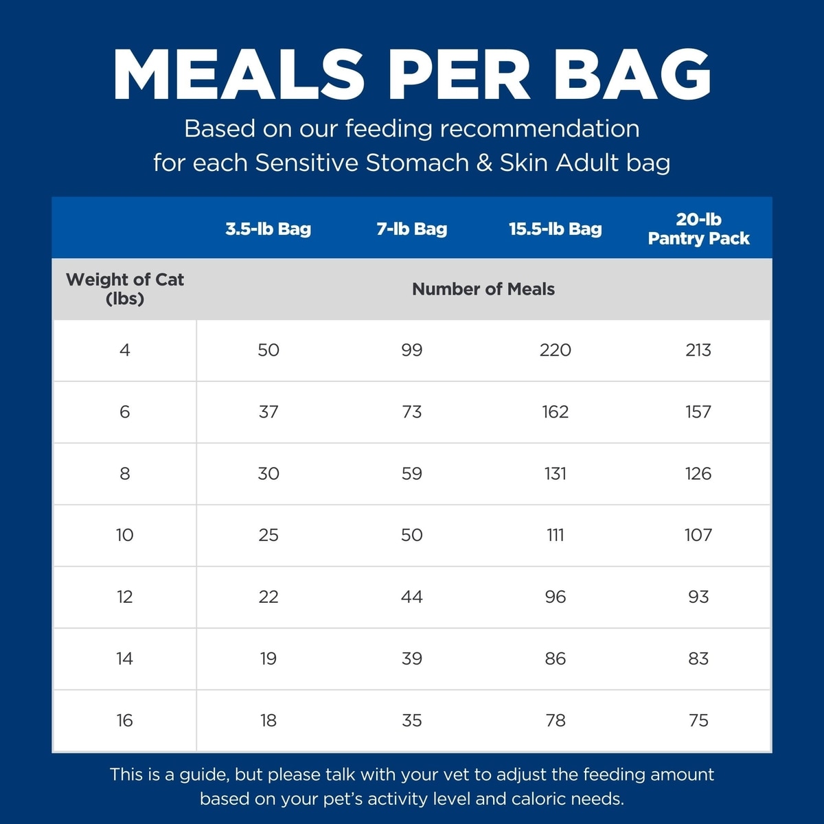 Hill's Science Diet Adult Sensitive Stomach & Skin Cat Food provides your adult cat with great tasting nutrition for a long, happy life. Formulated for adult cats with sensitive stomachs or skin, this nourishing recipe is balanced to meet your pet’s needs, is easy to digest and promotes a healthy skin and coat. Made in the USA with global ingredients you can trust, every ingredient meets strict requirements for purity and nutrient content which exceed industry standards. Every Hill's recipe is taste-tested by the pets at the Pet Nutrition Center to make sure mealtime is irresistible because the healthiest pet food won't do much if your cat refuses to eat it.