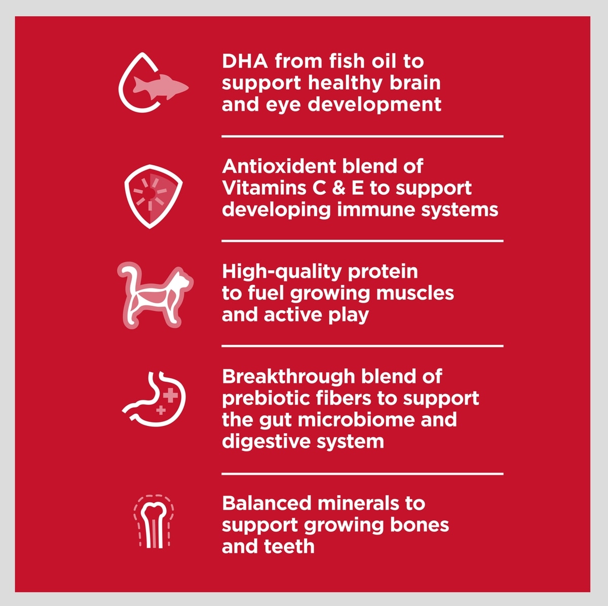 Formulated with five essential building blocks to help kittens start life with healthy growth and a strong immune system.