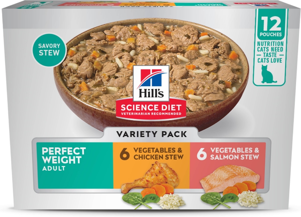 Hill's Science Diet Perfect Weight Chicken & Salmon Variety Pack Stew Wet Cat Food, 2.8-oz Pouch, 12 count