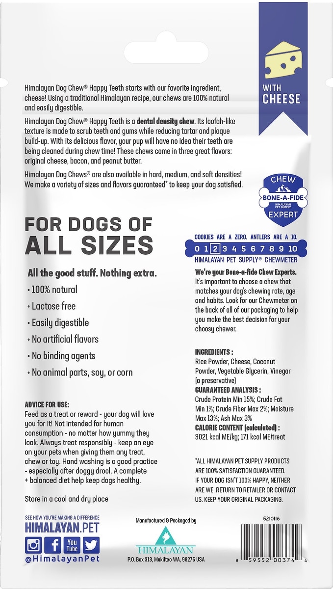 Himalayan Pet Supply Happy Teeth Himalayan Cheese Flavor Dental Dog Treat, 2 piece, Large