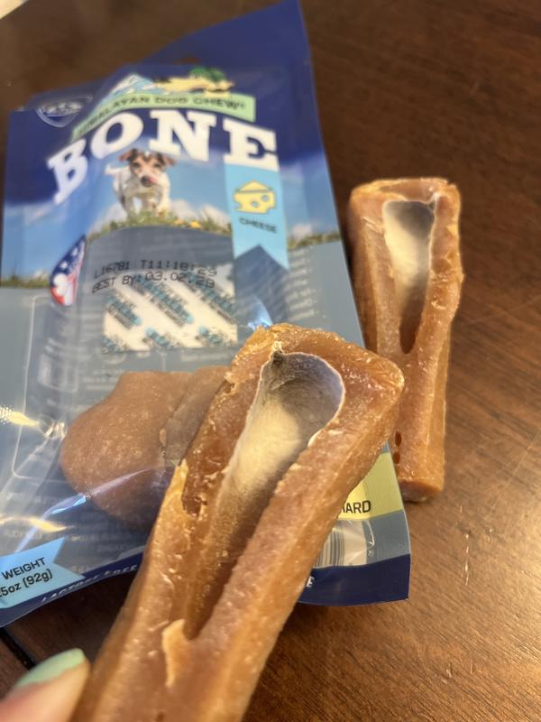 Bought these for my dog because he likes the regular stick of Himalayan cheese. Came today in the package split in half and in pieces. When I removed It from the package there was mold all on the inside. Be careful and check before giving to your babies!