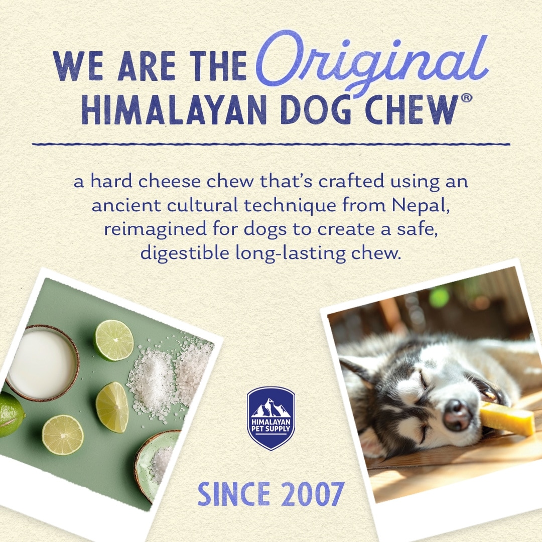 Himalayan Pet Supply is the original creator of the Himalayan Dog Chew. Their team supports a network of over 10,000 Himalayan farmers who handcraft these ancient hard cheese chews for dogs around the world. Not only are these chews adored by pups and approved by pet parents, but they are also the only chews that are certified Fair Trade by the World Fair Trade Organization.