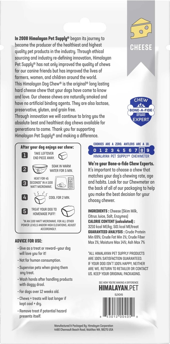 - Himalayan Pet Supply Himalayan Dog Chew Original Yak Cheese Dog Chews, 3 count$25.98 Chewy Price$34.98 List Price$24.68 Autoship PricePromo, New Customers Only: Spend $49+, Get $20 eGift Card
