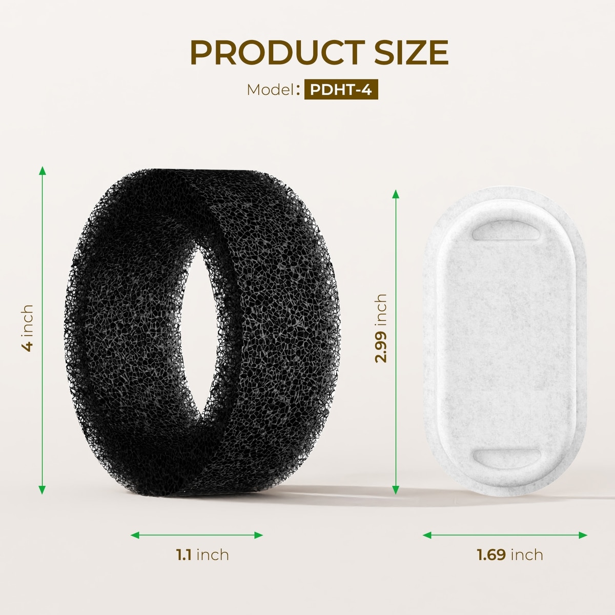 HINTON PDHT-4 Dog & Cat Water Fountain Replacement Filters & Pre-Filter Sponges, White, 4 count