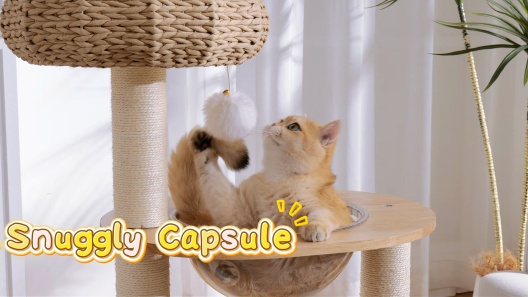 Hittite Solid Wood 38-in Faux Fur Cat Tree Tower & Condo with Sisal Scratching Post, Capsule & Ladder, 24.5 x 17.3 x 38-in