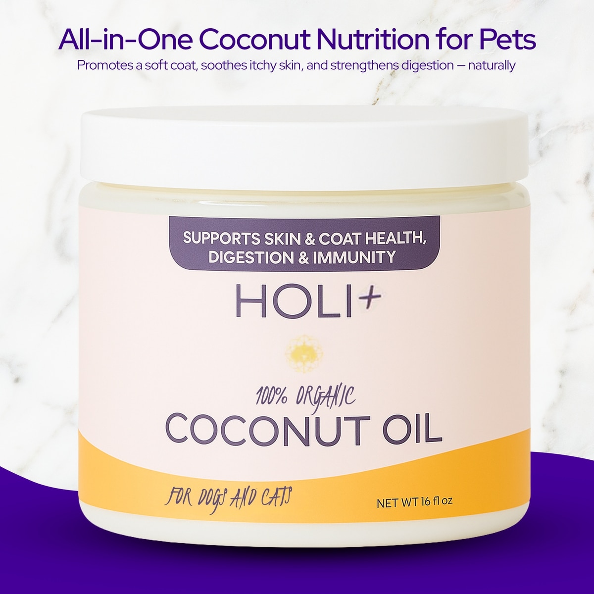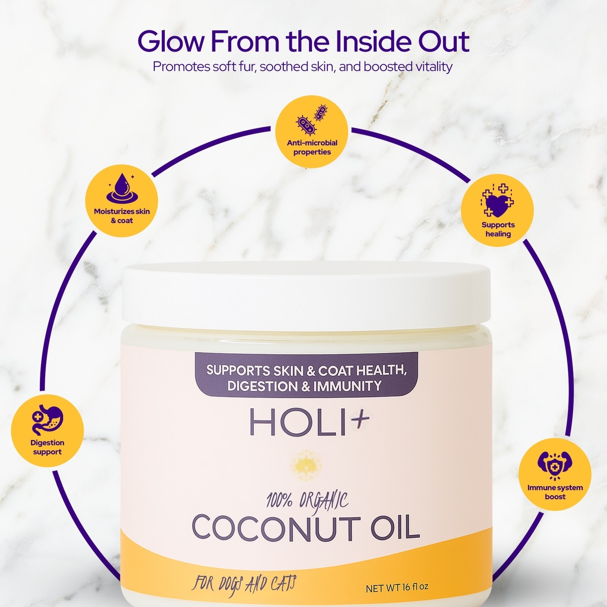 HOLI Organic Virgin Cold-Pressed Coconut Oil Skin & Coat Supplement for Dogs, 16-fl oz bottle