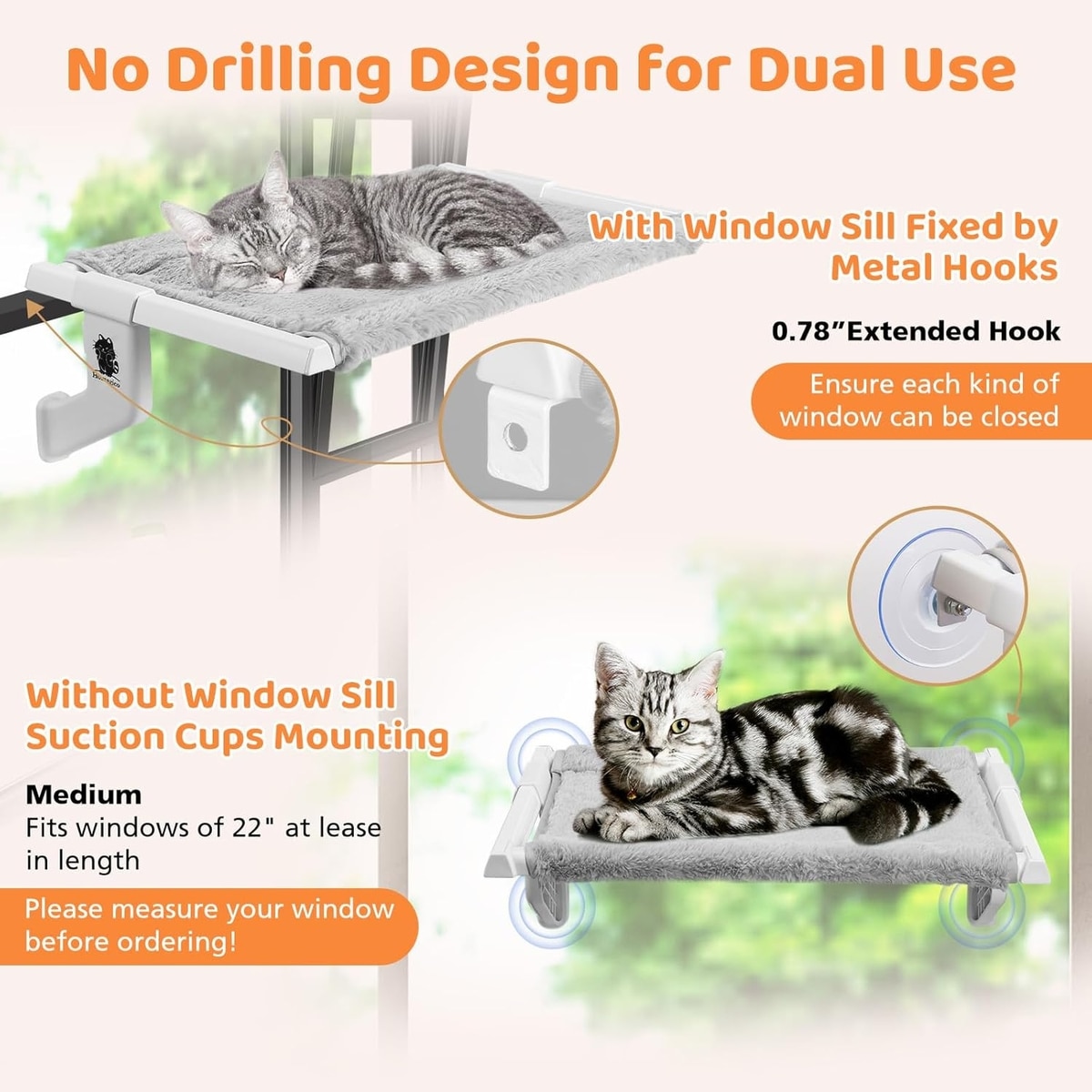 HOMAGICO 2-in-1 Fleece Cat Window Hammock & Perch, 22 x 13-in, Grey
