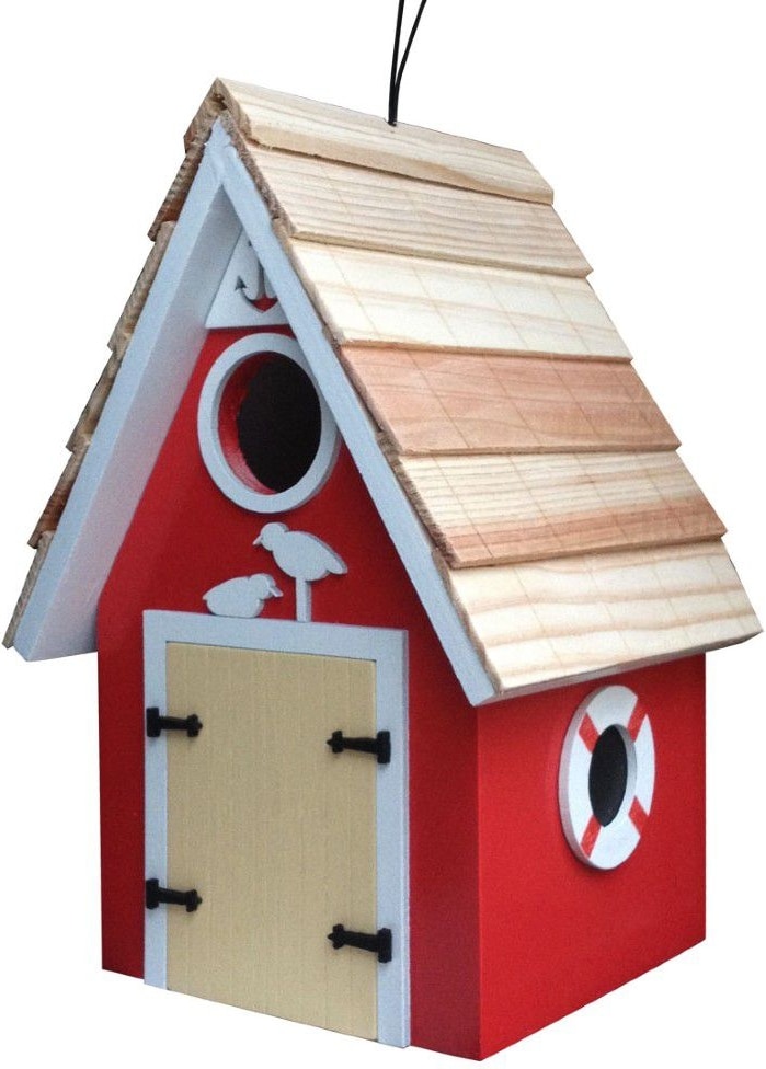 This fully functional birdhouse meets outdoor nesting requirements.