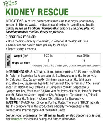 HomeoPet Feline Kidney Rescue Liquid Supplement for Cats, 15-mL