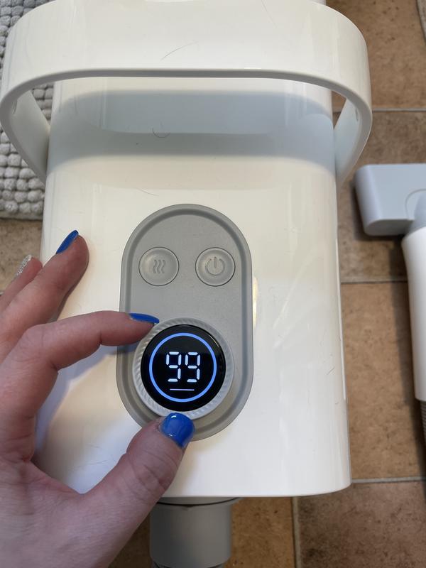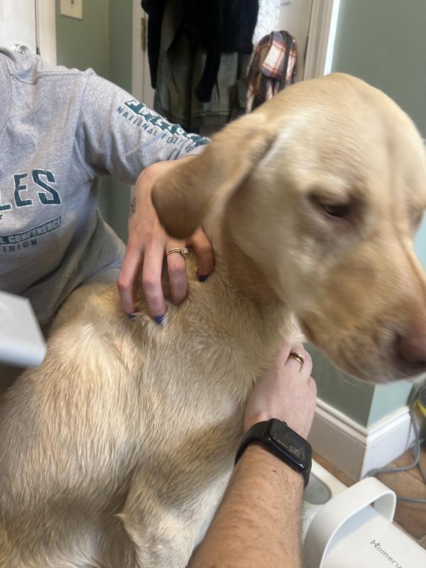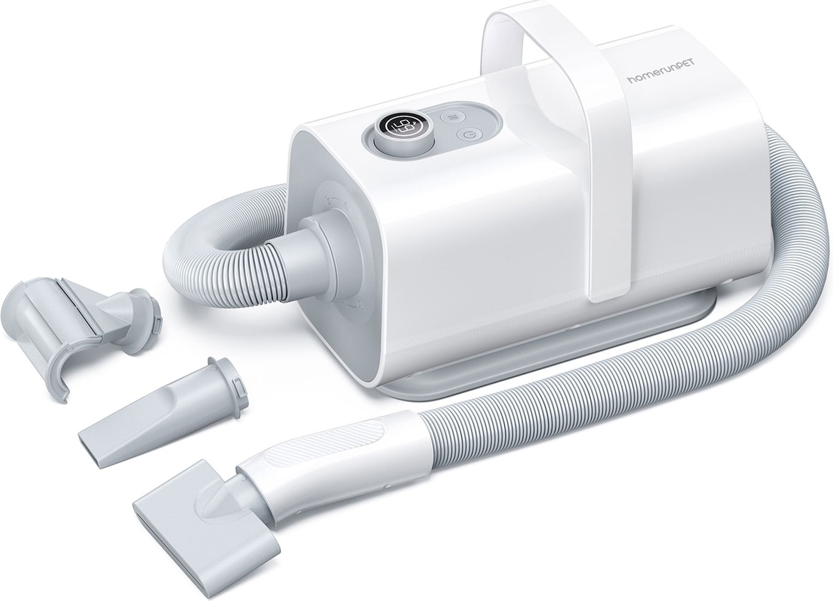 …until now. My lab is wiggly, hates water, hates the tub, and worst of all, stays wet for the entire day, making everything smell like wet dog. It’s always a two person job, 5 bath towels, and no one is happy at the end of it. I left this dryer sitting on the floor for a few days so my lab got used to it because he’s a real scaredy cat. I ran it a few times before just so he could hear the sound and get used to the air blowing. I’m honestly REALLY impressed by this small machine. It is way quieter than I thought it would be. The blowing power goes from 1-99…after about 60 it gets louder, but you can still hear over it. It has 3 heat settings: cool, warm, and hot, indicated by a ring of color around the number that indicates the blowing speed. When it finally came down to it, my husband helped hold the dog, and we started off at 1, working slowly and giving him lots of praise. Then, we slowly upped the blowing speed and turned the heat to warm. We got up to about 60-65 and that was enough blowing force for my labs coat. I was impressed that this soaked lab (we had already used 2 towels to rough dry him) dried to about 90% in roughly 10 minutes. It probably would’ve been faster if we could set the blowing speed up higher to begin with, but I didn’t want to freak my dog out. Also to add: we didn’t dry him to 100% because he was getting a bit antsy and wanted out of the bathroom. We decided to respect that he’d sat long enough for us. Super impressed and I will definitely be using this every bath time to give my dog the grooming experience! The ONE con: It comes with multiple attachments and the hose is decently long, BUT there is not space on the dryer itself to store either the hose or the extra attachments. I took off one star for the lack of convenience. Overall, though, I am SUPER happy with this!