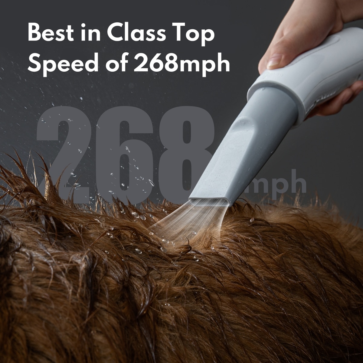 - Powered by a pure copper motor, a maximum wind speed of 265 miles per hour ensures efficient and reliable pet drying.