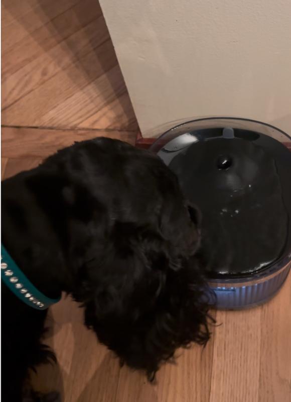 Both my cats and dogs are loving this water fountain. Clean filtered water is always available and they love that it gets refreshed as they walk up to it. It is super quiet so it does not scare them when the fountain goes on. It's battery operated so no cords. We use the motion sensor setting to turn it on to save on battery. After a weeks use it did not need to be charged yet. It was 5 days before I had to refill the water. It was easy to clean and the filter caught all the gunk normally left behind in the old water bowl.