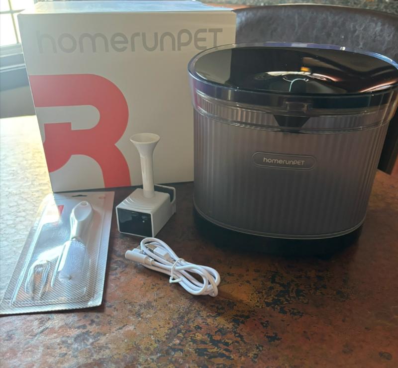 I just got the HomeRunPet wireless water fountain and it is so nice. I love that it is wireless and could be moved and put anywhere. It has a filter in it so that