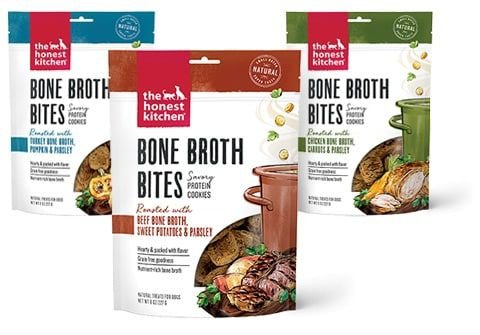The Honest Kitchen believes good dogs deserve more than boring biscuits. That’s why their Bone Broth Bites combine savory turkey bone broth with nutrient-rich pumpkin, carrots and a touch of parsley into one healthy bite.