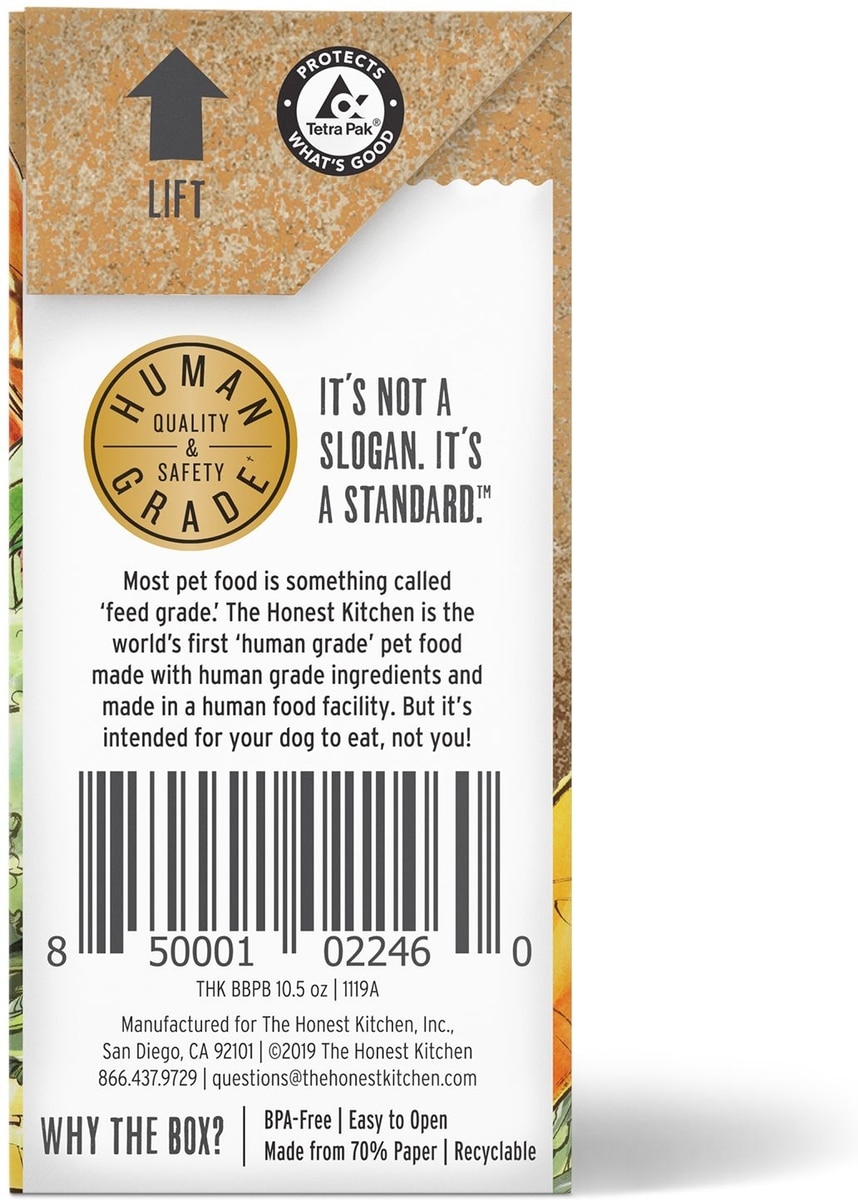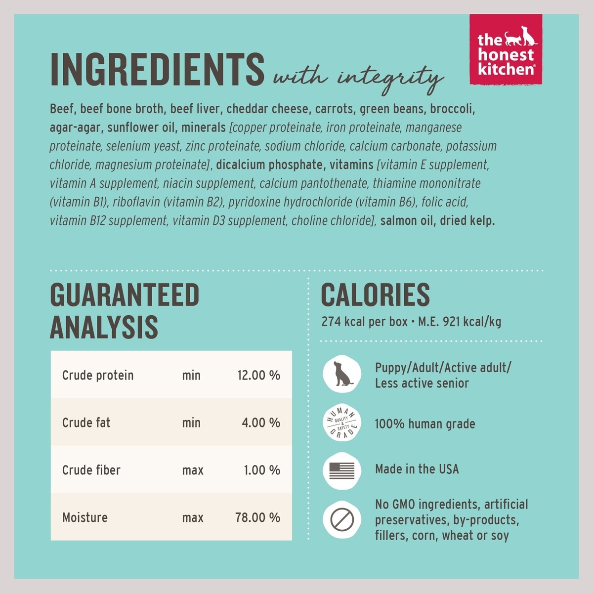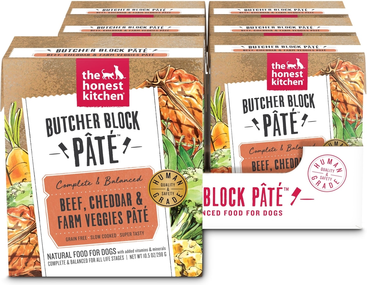 - The Honest Kitchen Human Grade Butcher Block Pate Beef, Lamb & Spring Veggies Wet Dog Food, 10.5-oz bag, case of 6$25.20 Chewy Price$25.74 List Price$23.94 Autoship PricePromo, New Customers Only: Spend $49+, Get $20 eGift Card