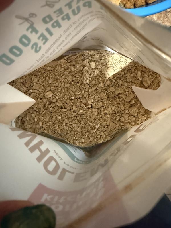 I wasn't sure what to expect when we got this puppy food. The food itself is dehydrated and powdered which makes it easy to measure and makes it consistent for every meal. Our puppy enjoyed it and would recommend it to other dogs!