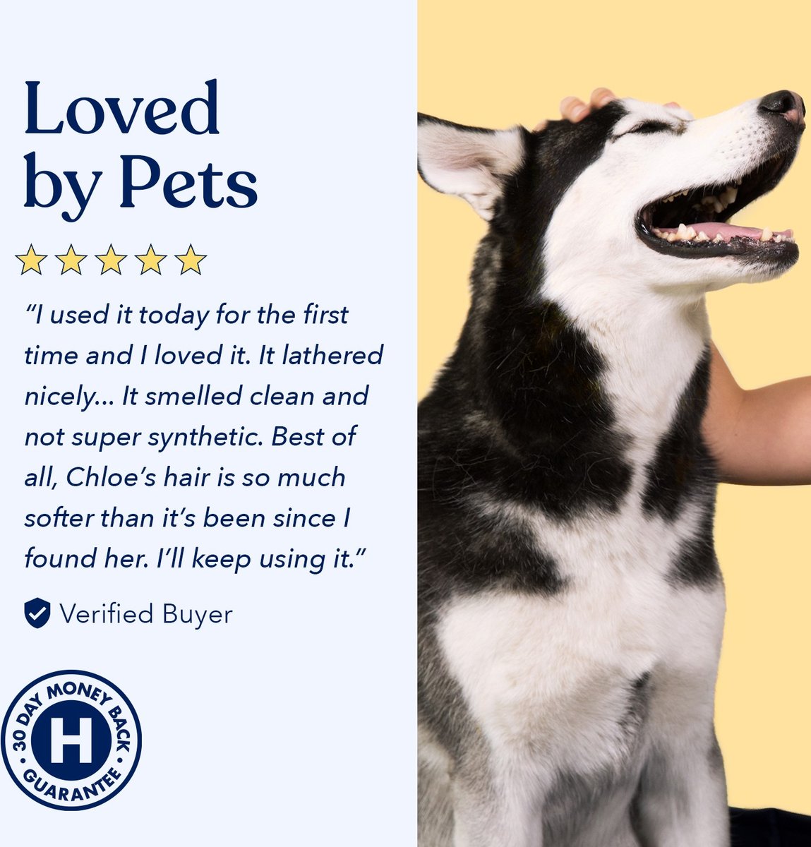 Made with premium ingredients such as Aloe Extract to help hydrate and nourish your dog’s skin while promoting a shiny coat, and Oatmeal for deep moisturization and hydration for your pet’s dry skin.