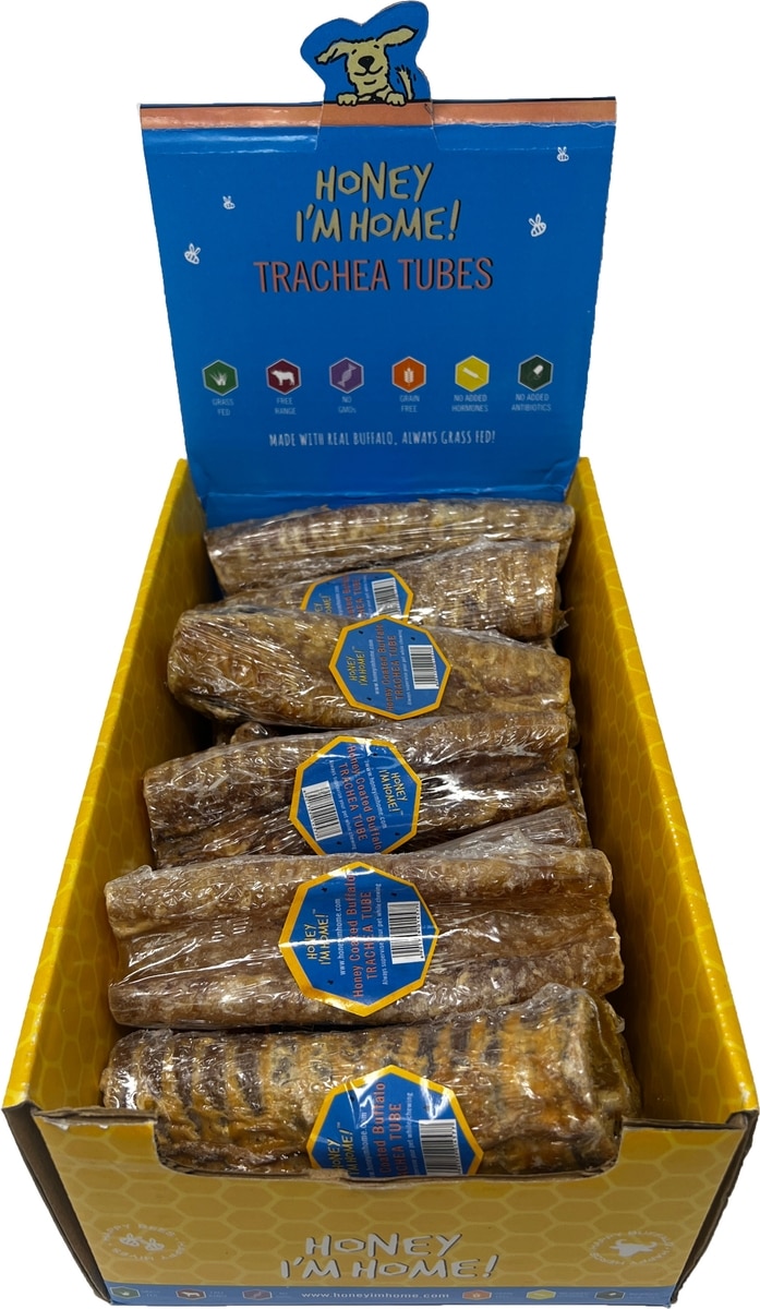 Honey I'm Home! Trachea Tubes Natural Honey Coated Buffalo Chews Grain-Free Dog Treats, 20 count