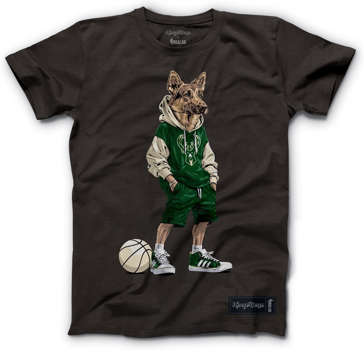 Hoop Dogs NBA German Shepherd T-Shirt, Milwaukee Bucks, Medium