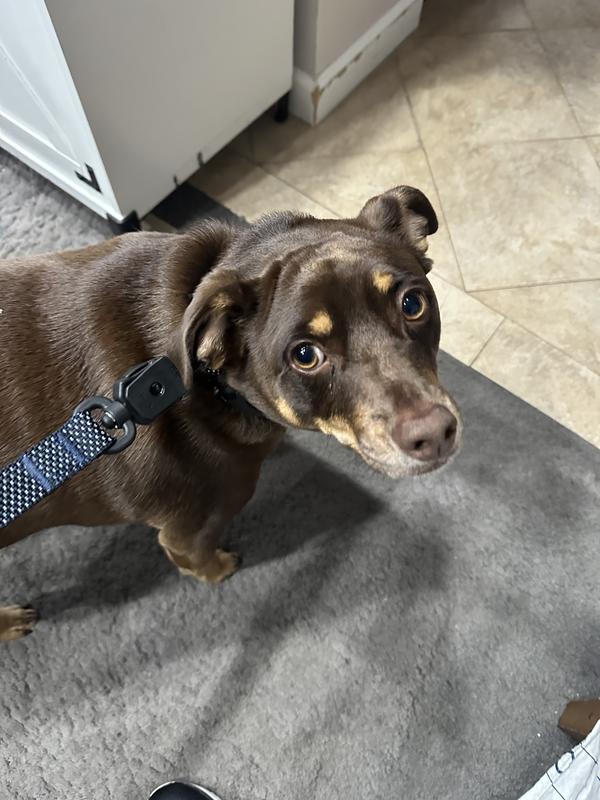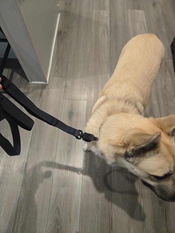 Love the thickness and width of the collar, it is well made with durable material. The magnetic quick clip is a great function, makes it easy to get the collar on wiggley dogs excited for the morning walk. The buckle where it attaches to the leash has a strong connection that doesnt come undone or pull away unintentionally. I appreciate that the collar has a D ring as well so a regular leash can be used with the collar. The tab/buckle that attaches to the leash does hang oddly and flap arround when not connected, but this seems to bother me more than the dog.