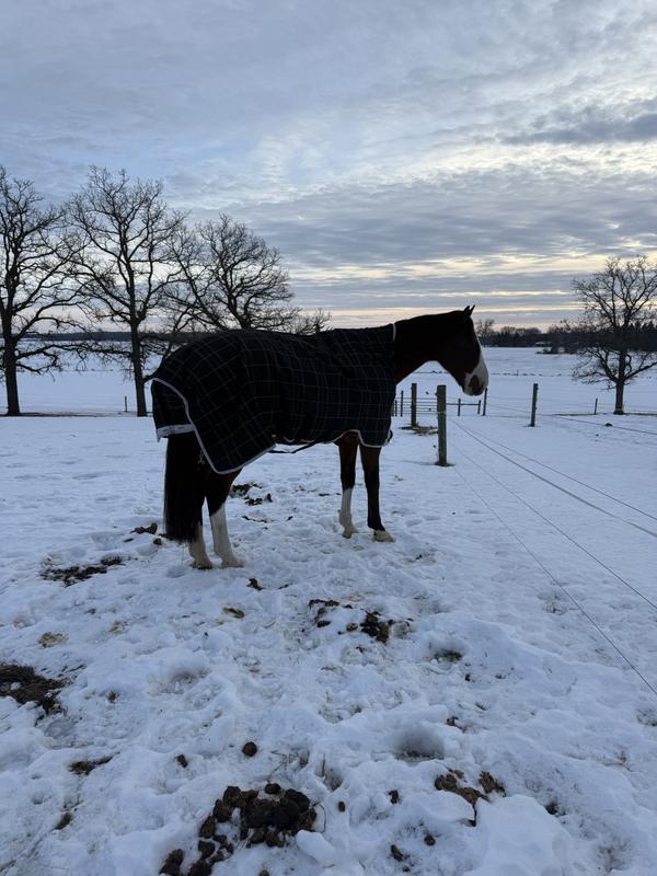 This turnout is best suited for horses with a narrower build due to its design and V-front closure.