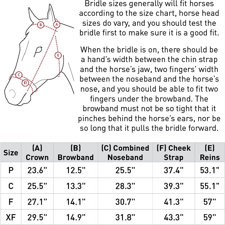 • Constructed with convenient buckle closures for the bit and reins.