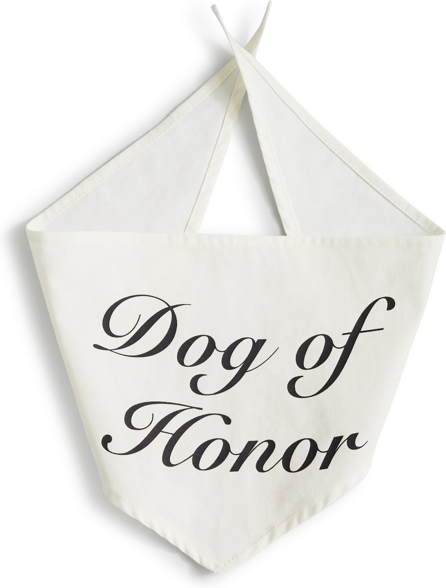 - Chic and sophisticated “Dog of Honor” design in black print.