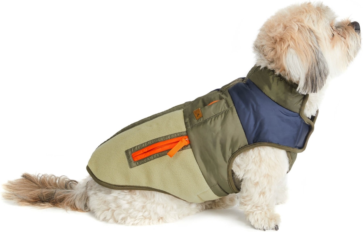 Hotel Doggy Mix Media Color Block Dog Jacket, Military Olive, Medium