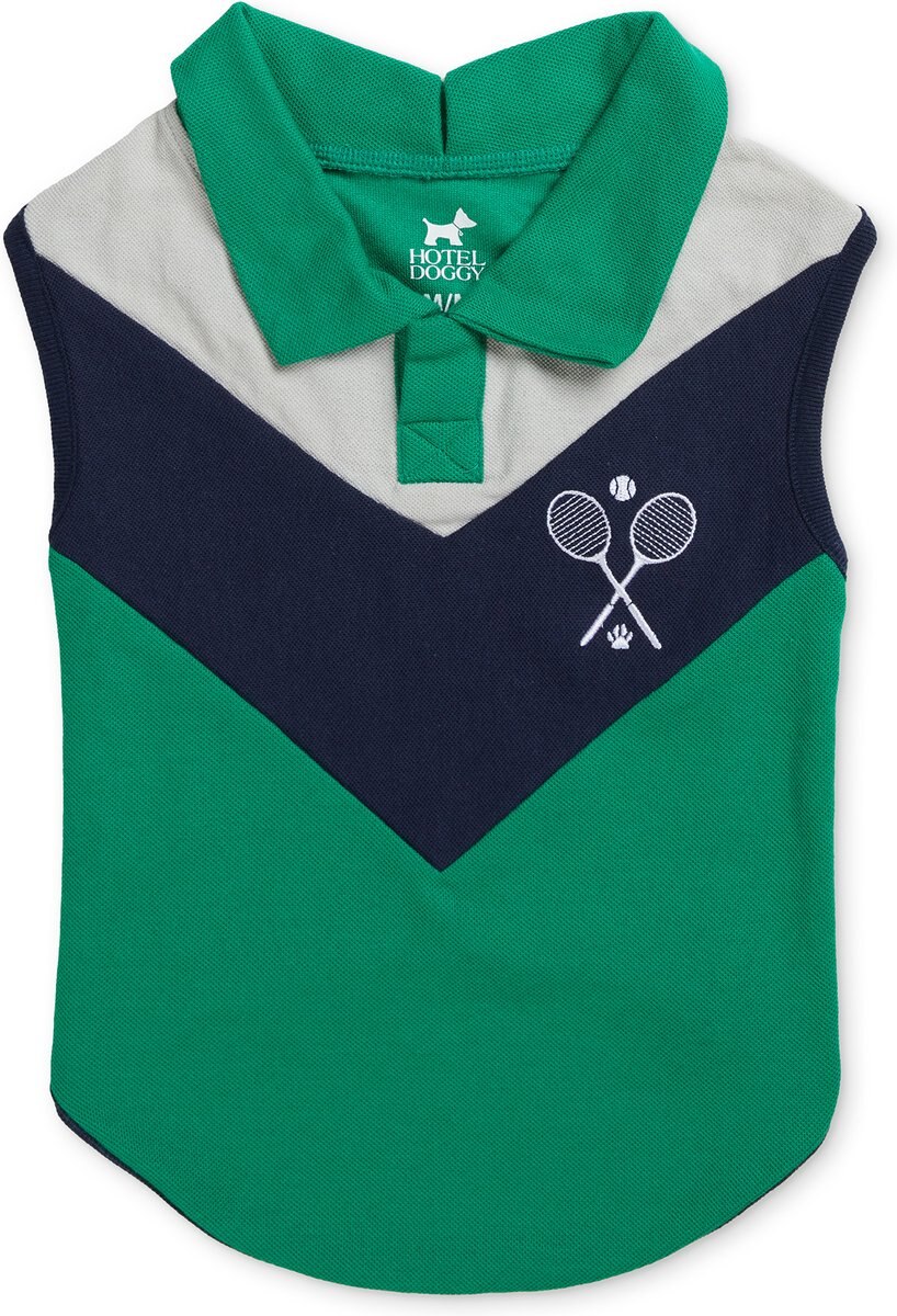 Hotel Doggy Tennis Color Block Pique Tank Top Dog Shirt, Golf Green, X-Small