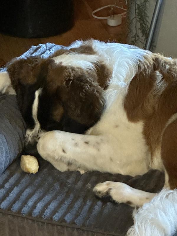 We have an English bully, Dane and 4 Saint Bernards that stay occupied!! Love these. When they become too small I soak them in water overnight and microwave 40 seconds