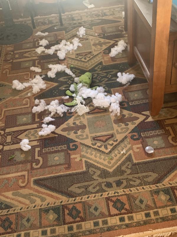 Within 10 minutes, my beagle had chewed the plastic pieces on the top and pulled out the stuffing.