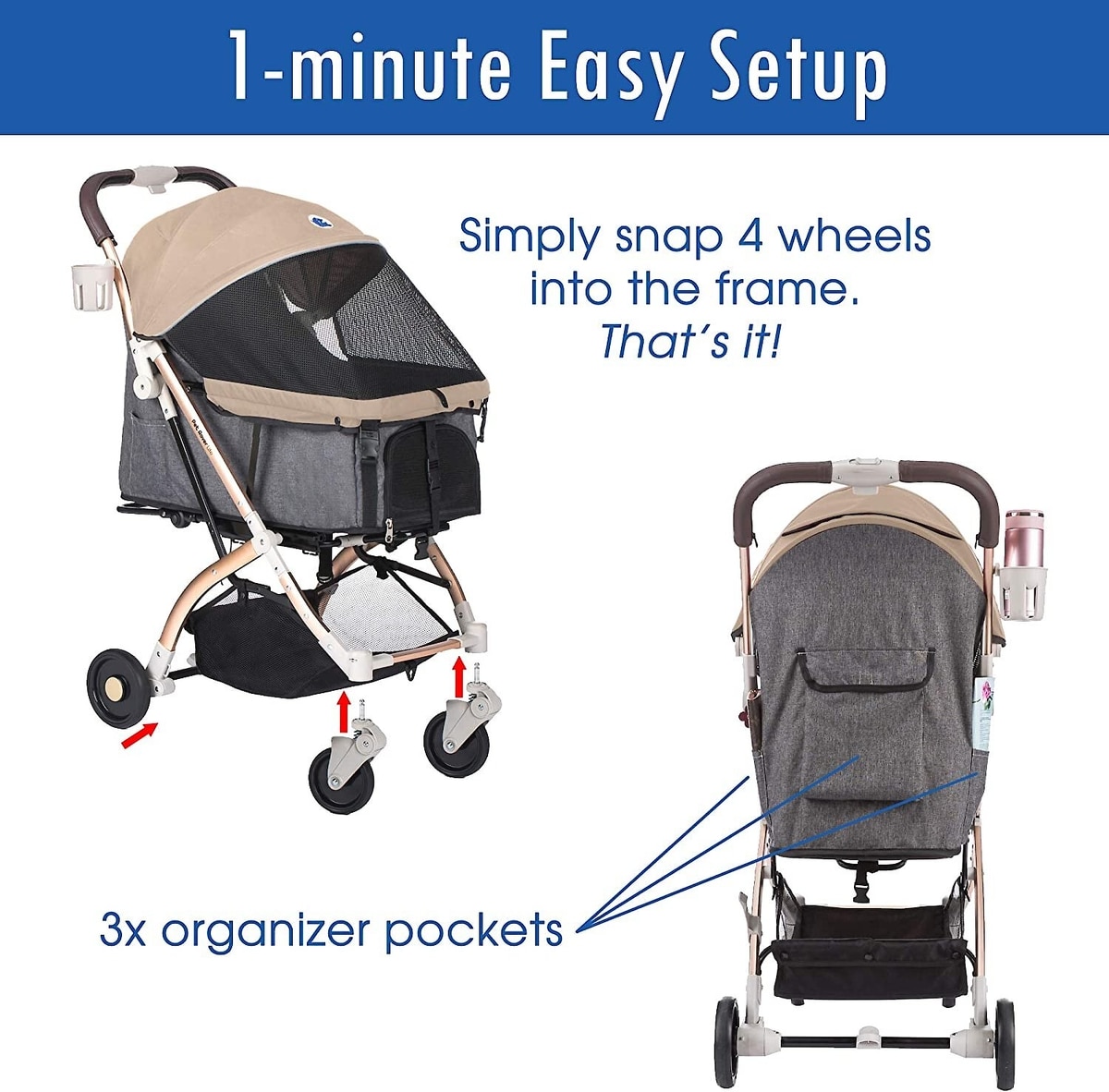 - Premium pet stroller that allows you to bring your furry friend with you wherever you go.
