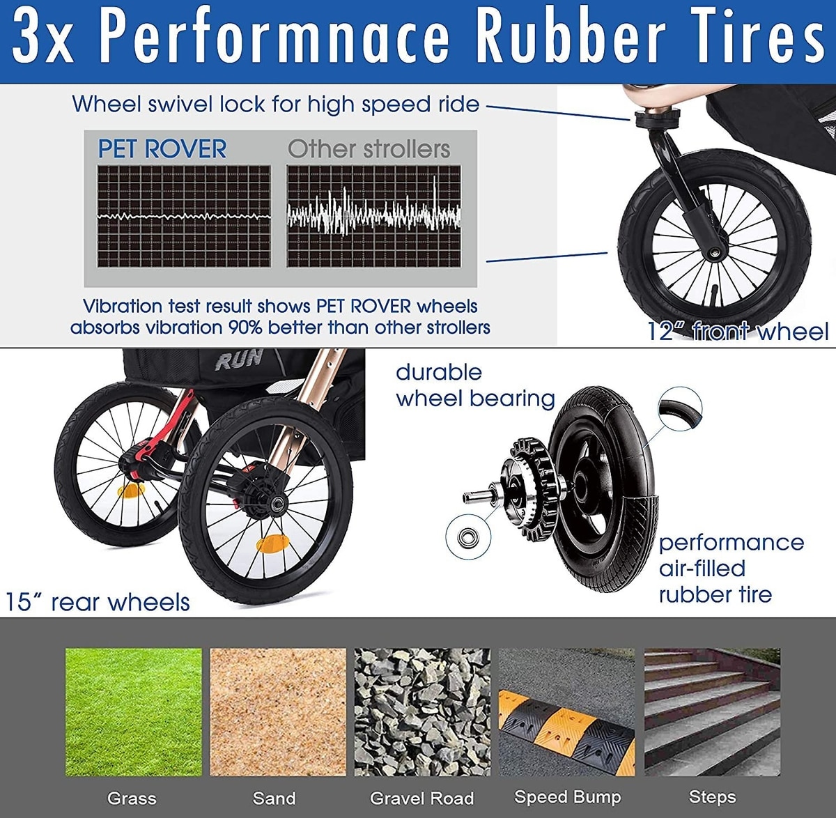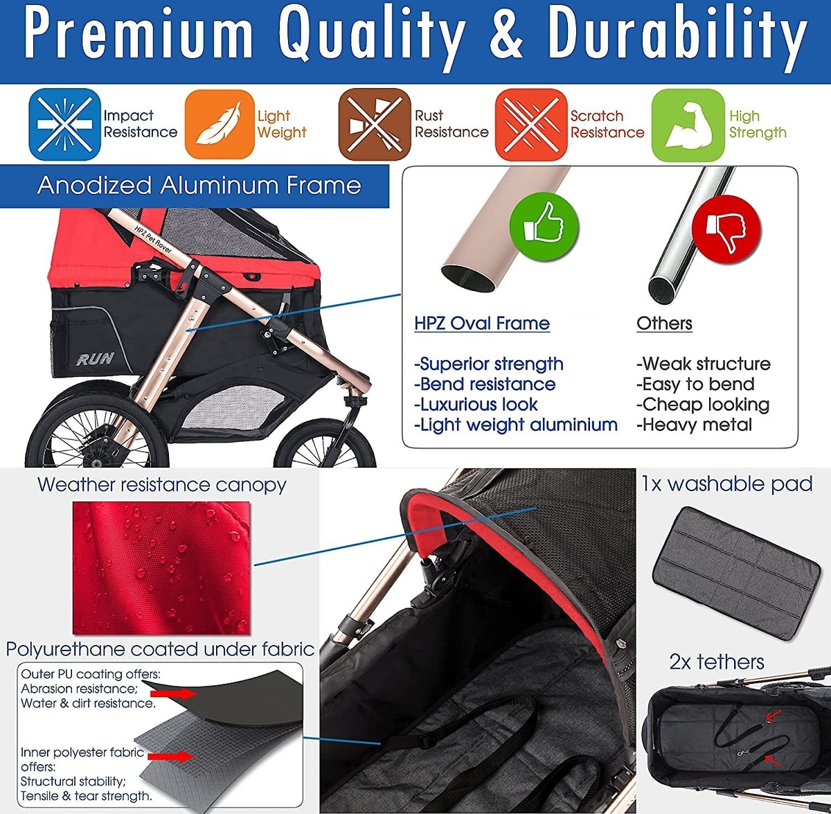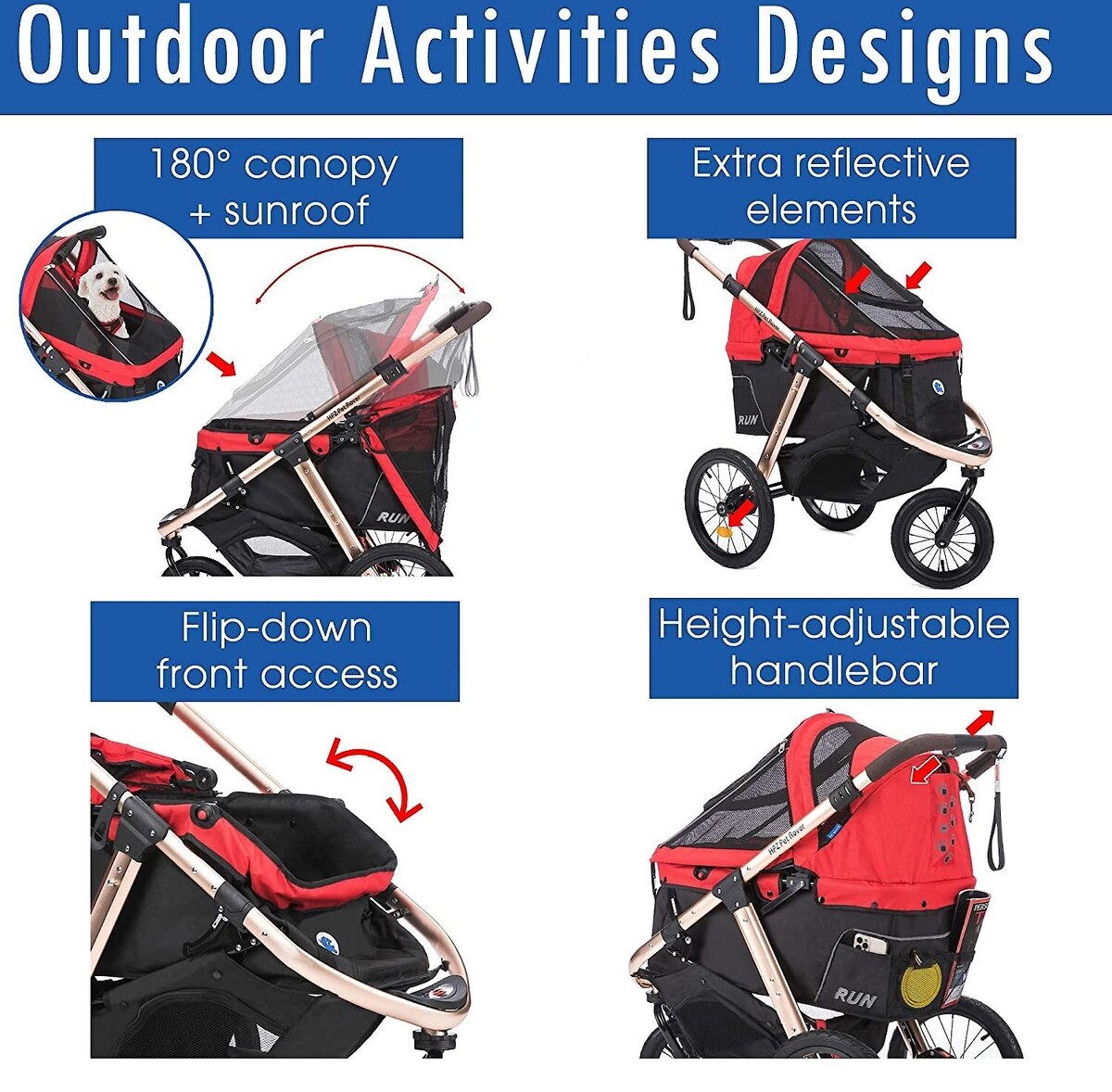 HPZ Pet Rover Run Performance Jogging Dog & Cat Stroller, Red