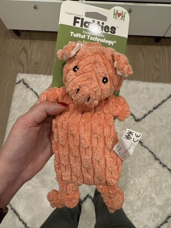 - Barnyard Flatties feature HuggleHounds’ signature knot on each leg.