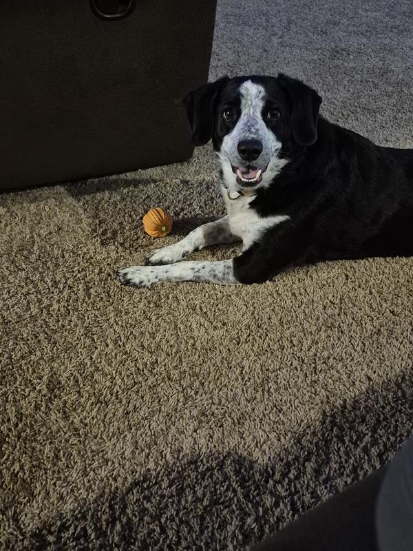 The dogs love this pumpkin ball/toy! With four large dogs (3 Rotties/1 GSD) playing and tossing it around it’s still lasting. Wish I ordered more than one of these