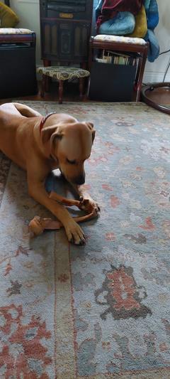 My Lilly loved her leathery bone. But it didn’t last longer than 3 days. It’s made of strings stuffed in a leather wrap. Very cheap made. I’m surprised she didn’t