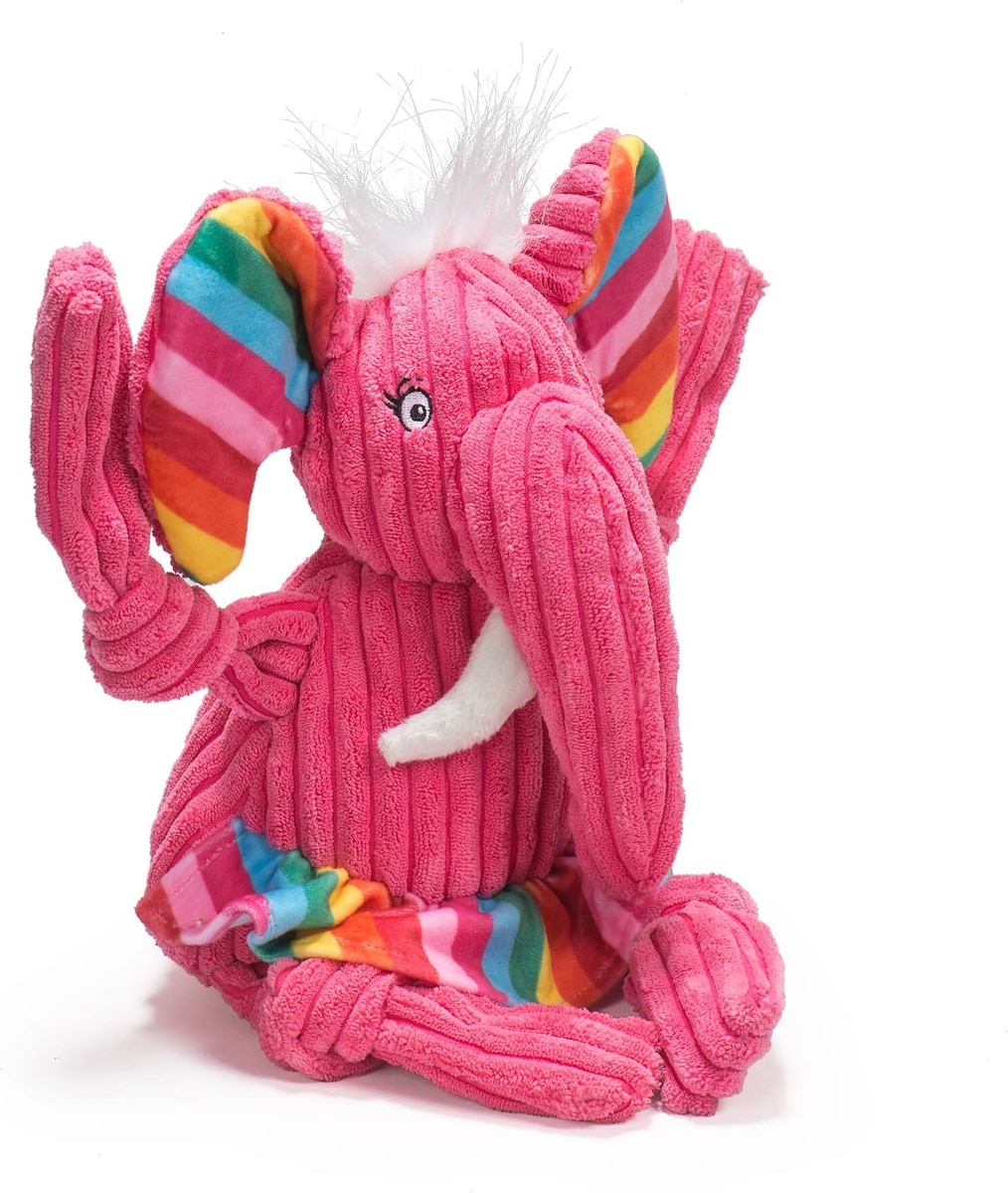 HuggleHounds Rainbow Durable Plush Corduroy Knotties Squeaky Dog Toy, Elephant, Large