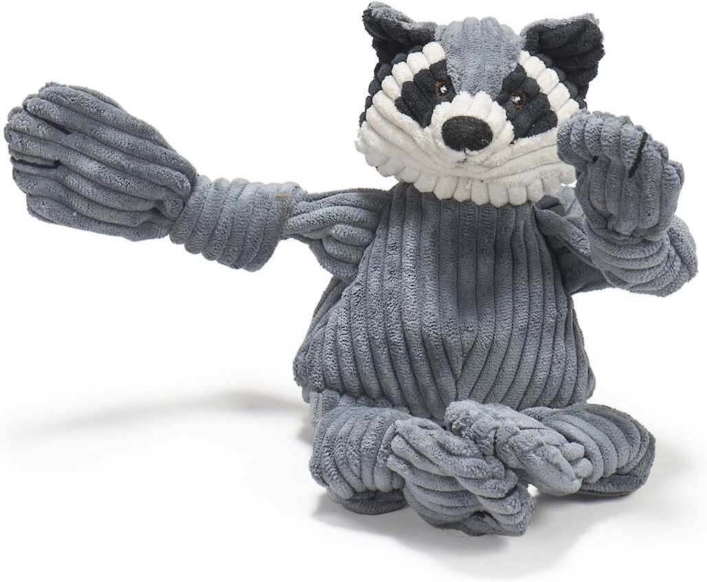 HuggleHounds Woodlands Durable Plush Corduroy Knottie Racoon Squeaky Dog Toy, Small