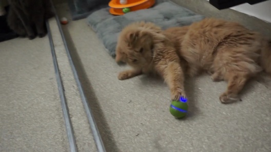 This cat toy does not bounce. The PlayKat™ ball can be used on hardwood/tile surfaces and carpeted areas. If the ball cracks, discard all pieces immediately to ensure the safety of your children and pets.