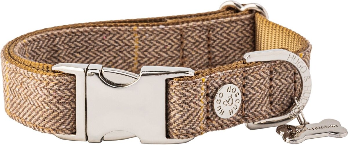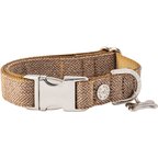 HUGO & HUDSON Checked Herringbone Tweed Metal Buckle Dog Collar, Caramel, Small