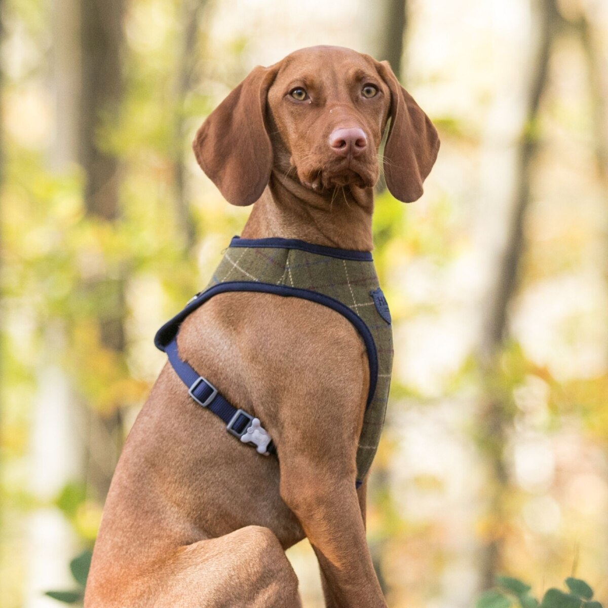 HUGO & HUDSON Checked Tweed Dog Harness, Dark Green, X-Small