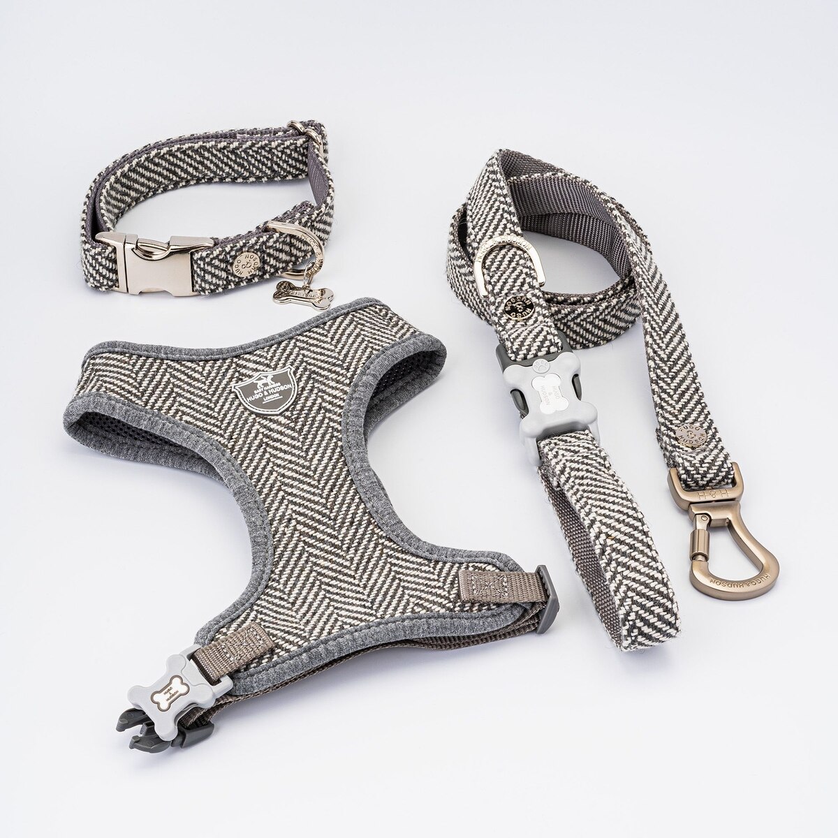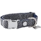 HUGO & HUDSON Herringbone Tweed Metal Buckle Dog Collar, Grey, Small