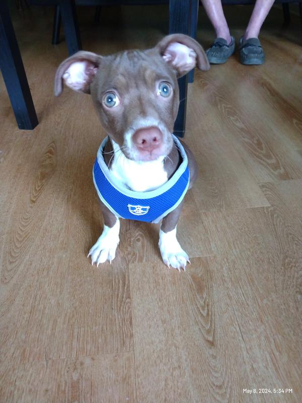 I love this harness. It's padded nicely and very easy to get on. My dog walks like a dream in it, totally different then with her collar and leash. No pullin