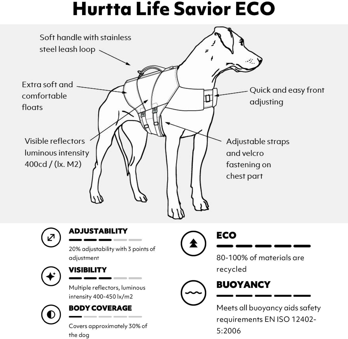 Hurtta Life Savior ECO Dog & Cat Life Jacket, Buckthorn, 22-33 lbs
