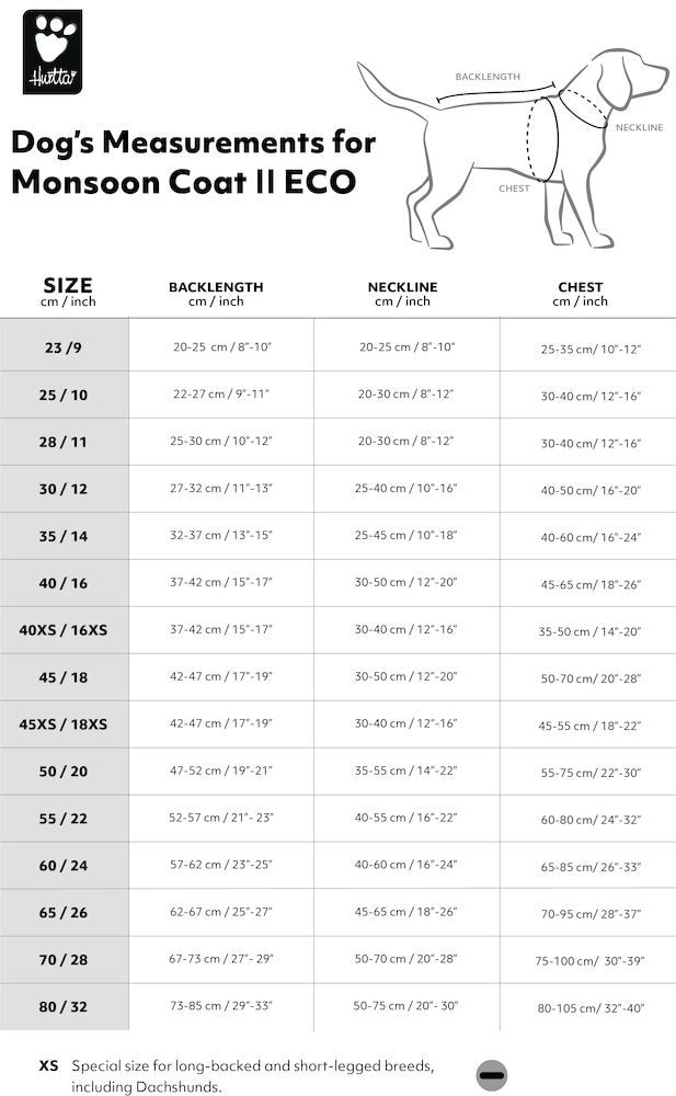 Love how the Hurta Monsoon fits my 9 month mini poodle. The raincoat keeps him dry and protected from wind. Love how well made it is.